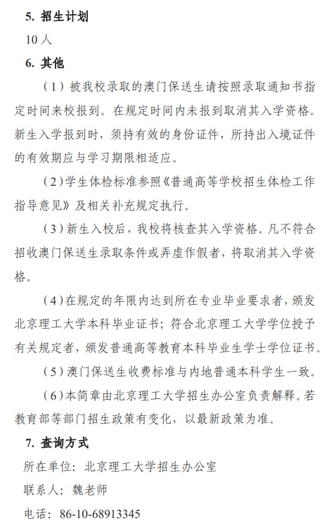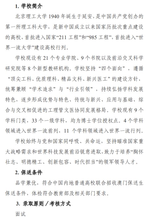 北京理工大学2024年招收澳门保送生简章